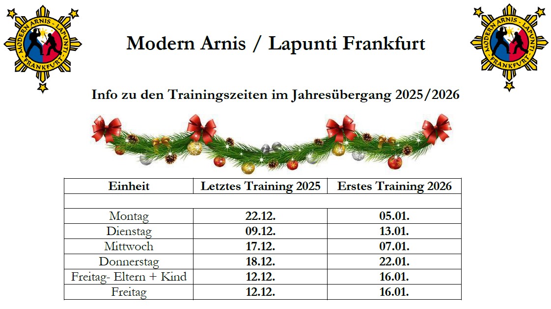 Obwohl der Stockkampf im Vordergrund steht, ist Arnis ein vollständiges Kampfkunst-System. Wir trainieren waffenlosen Kampf (Phil. Boxen, Panantukan), Bodenkampf, Schwert- und Messertechniken sowie eine Vielzahl an Hebeln und Würfen. Modern Arnis eignet sich auch sehr gut zur Selbstverteidigung. Wir achten im Training auch darauf, dass ein gewisser Fitness-Zustand erreicht wird.